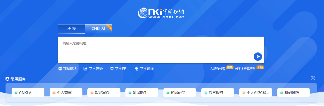 登录知网首页www.cnki.net,切换至CNKI AI进入;你也可以直接输入https://ai.cnki.net/进入。
