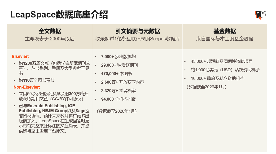 LeapSpace是爱思唯尔推出的新一代旗舰型AI 驱动智能科研平台。爱思唯尔与全球科研共同体携手开发,赋能科研学者将科研构想更快转化为现实影响力,同时保证科研的诚信、透明与可信。当下,AI 正在深刻重塑科研的开展、评审与传播方式。